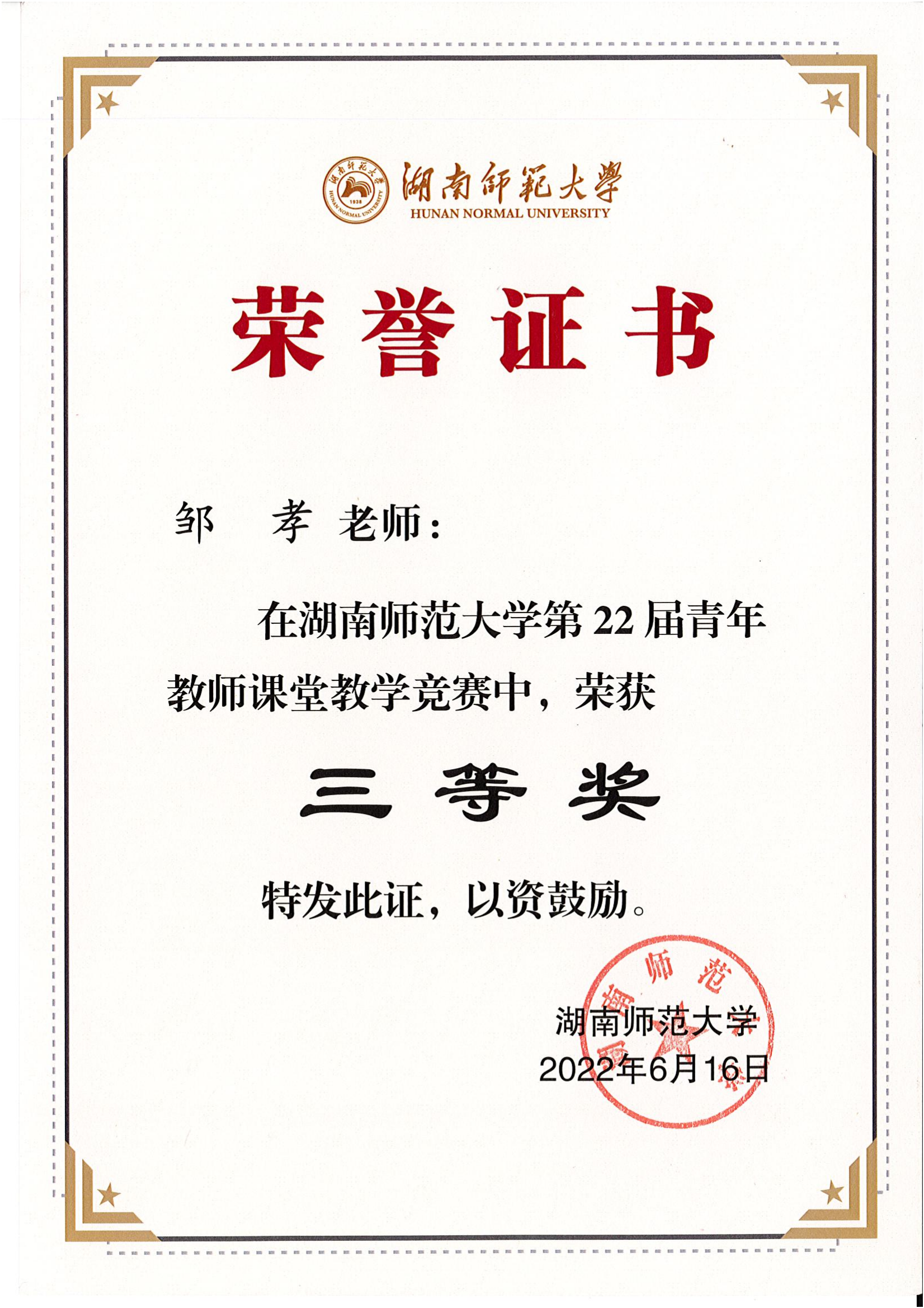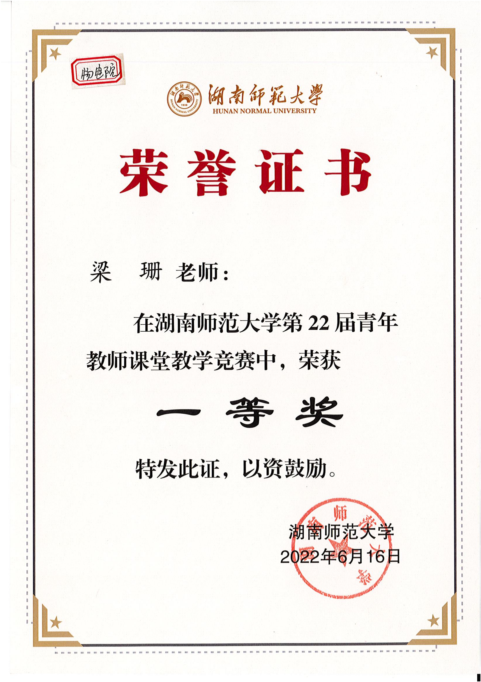 2022年湖南省第九届大学生物理竞赛获奖