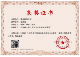 2022年,在第六届全国大学生集成电路创新创业大赛中,由澳门新新浦京708金湘亮教授指导的杨健、周威、汪洋三位博士研究生同学完成的项目《高性能复合型光电探测芯片与集成应用研究》荣获华中赛区一等奖并顺利进入全国决赛,最终荣获全国总决赛二等奖。金湘亮老师荣获优秀指导教师称号。