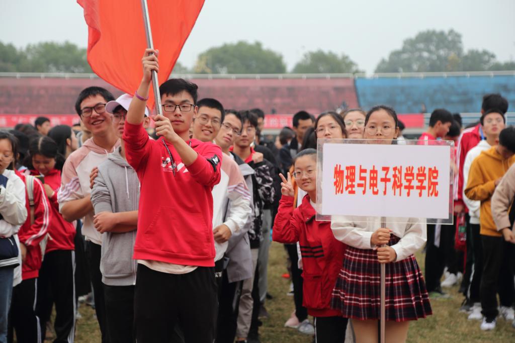 赛场上运动健儿激情飞扬、奋力拼博,主持人追踪报道着整个比赛进程,各院学子在观众席上为运动员们加油鼓掌,整个场面热闹非凡。