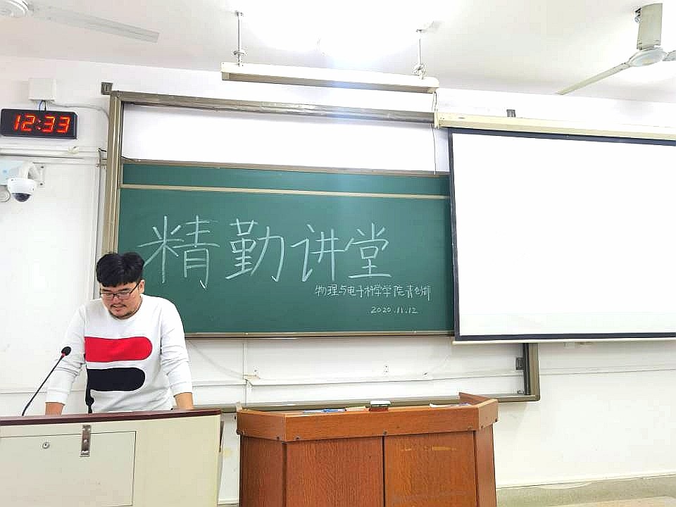 11月12日中午,澳门新新浦京708青年创新创业指导中心在格物楼220教室举办主题为“石墨烯的诗与远方”的精勤讲堂。2019级电子班吉程鹏担任主讲人。2019级、2020级部分同学参加了此次讲堂。