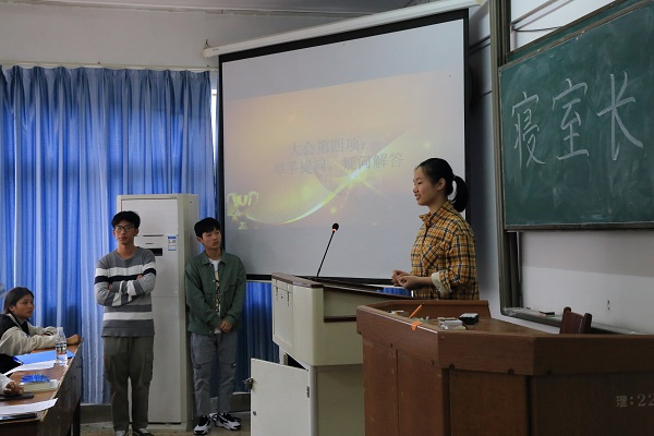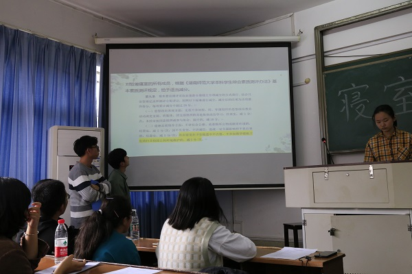 澳门新新浦京708学生会健康服务部成员向到场的各位同学作自我介绍。部长韩煦琳具体讲解了学院教室和寝室的卫生要求,说明了查寝的安排和评比方式,并展示了优秀寝室的图片。对于同学提出的有关寝室物品摆放等方面的疑问,她逐一作出回答,并表示将会结合第一次查寝的情况进行反馈。