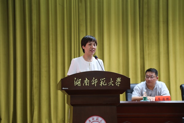 翟亚新作为教师代表发言,她希望新生在进入大学后,能做到对自己负责任,在生活方面照顾好自己,在学习方面做好未来规划,能够在大学四年里坚定不移,学有所成。