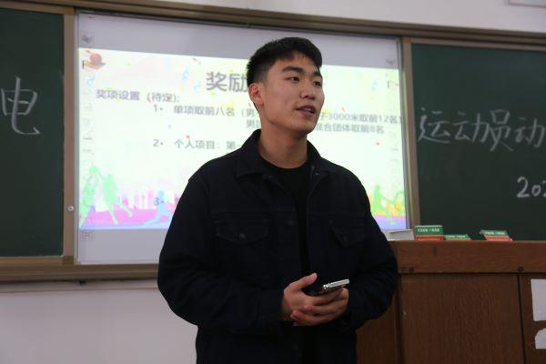 韩翔宇宣读了本届运动会规程,分别从后勤保障、新闻宣传以及如何应对突发事件等方面进行具体安排与分工。他想参加本次运动会的运动员提出三点建议:一是思想要重视,赛前需充分热身,保护好自身;二是态度要积极,要全身心投入比赛,享受比赛的过程;三是信念要坚定,始终相信自己,相信队友,共同努力,为院争光。