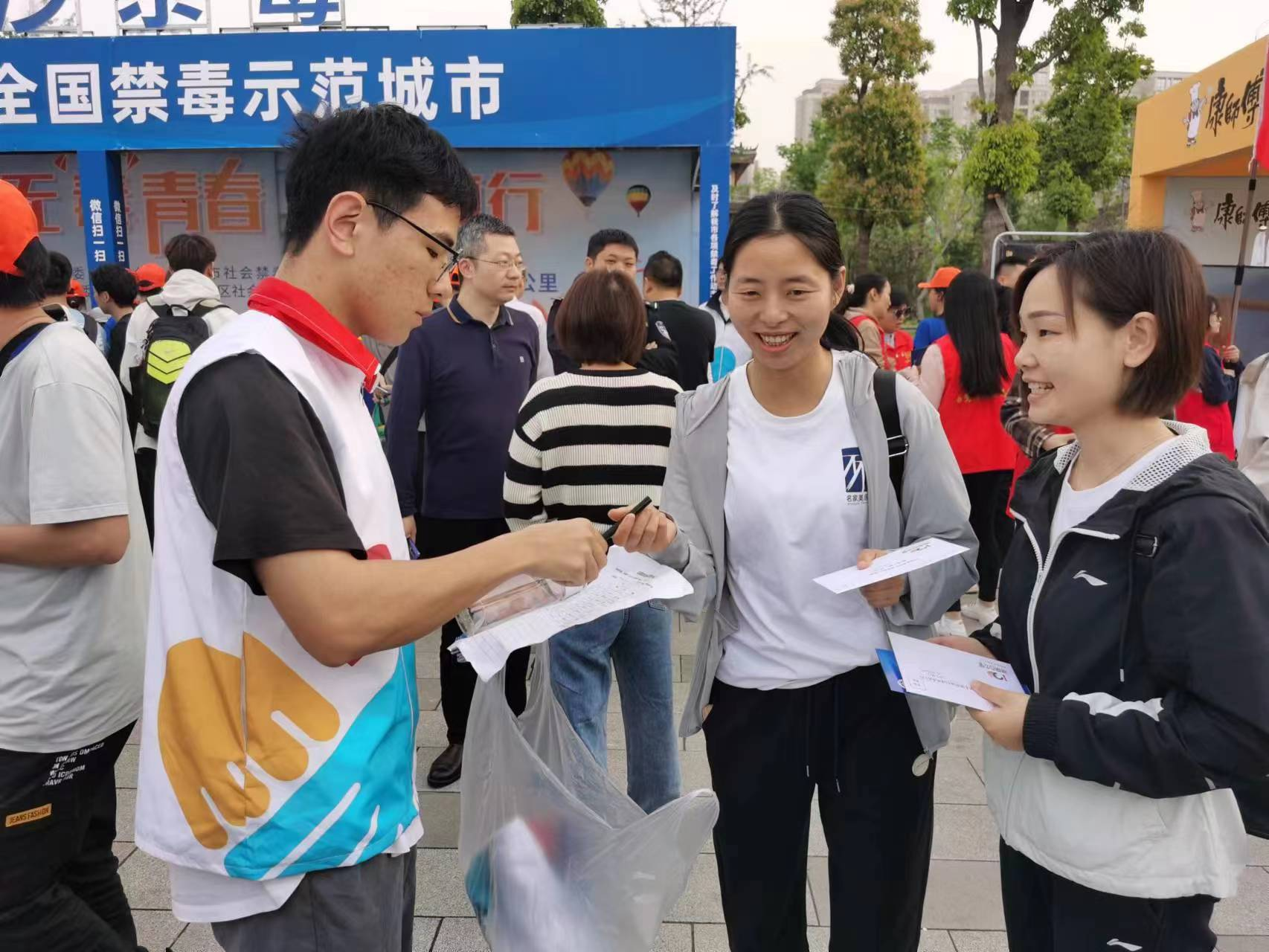 (通讯员:刘博)4月15日国家安全日到来之际,长沙市禁毒办,市社会禁毒协会,湘江新区禁毒委员会办公室,区社区禁毒协会联合开展无“毒”青春,阳光同行——百公里毅行禁毒宣传活动,澳门新新浦京708团委青工部同阳光教育协会组织志愿者,协助洋湖国际社区开展禁毒社会实践活动。