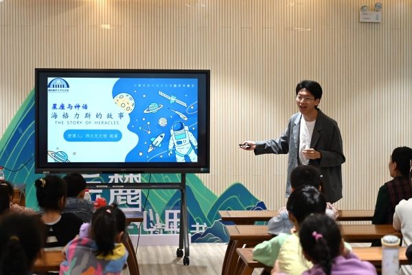 活动开始前,志愿者们协助现场人员进行签到,并维持了现场活动秩序,营造了融洽的课堂氛围。课程分为星座与神话的基本介绍,海格力斯的故事,虚拟天文馆中的星座三个部分。姚睿采用图文并茂的形式,讲解了与天文学相关的神话故事,激发了小朋友们及其家长的学习兴趣。课堂过程中,姚睿与小朋友们互动,进行了模拟天体运动的小游戏,帮助孩子们更好理解星座出现的原理,并运用“虚拟天文馆”程序直观地演示了星宿的方位和运动轨迹。活动现场,小朋友们及其陪同家长热情高涨,参与度高。活动结束后,澳门新新浦京708志愿者们和岳麓区图书馆工作人员一同整理现场,维护图书馆的整洁。