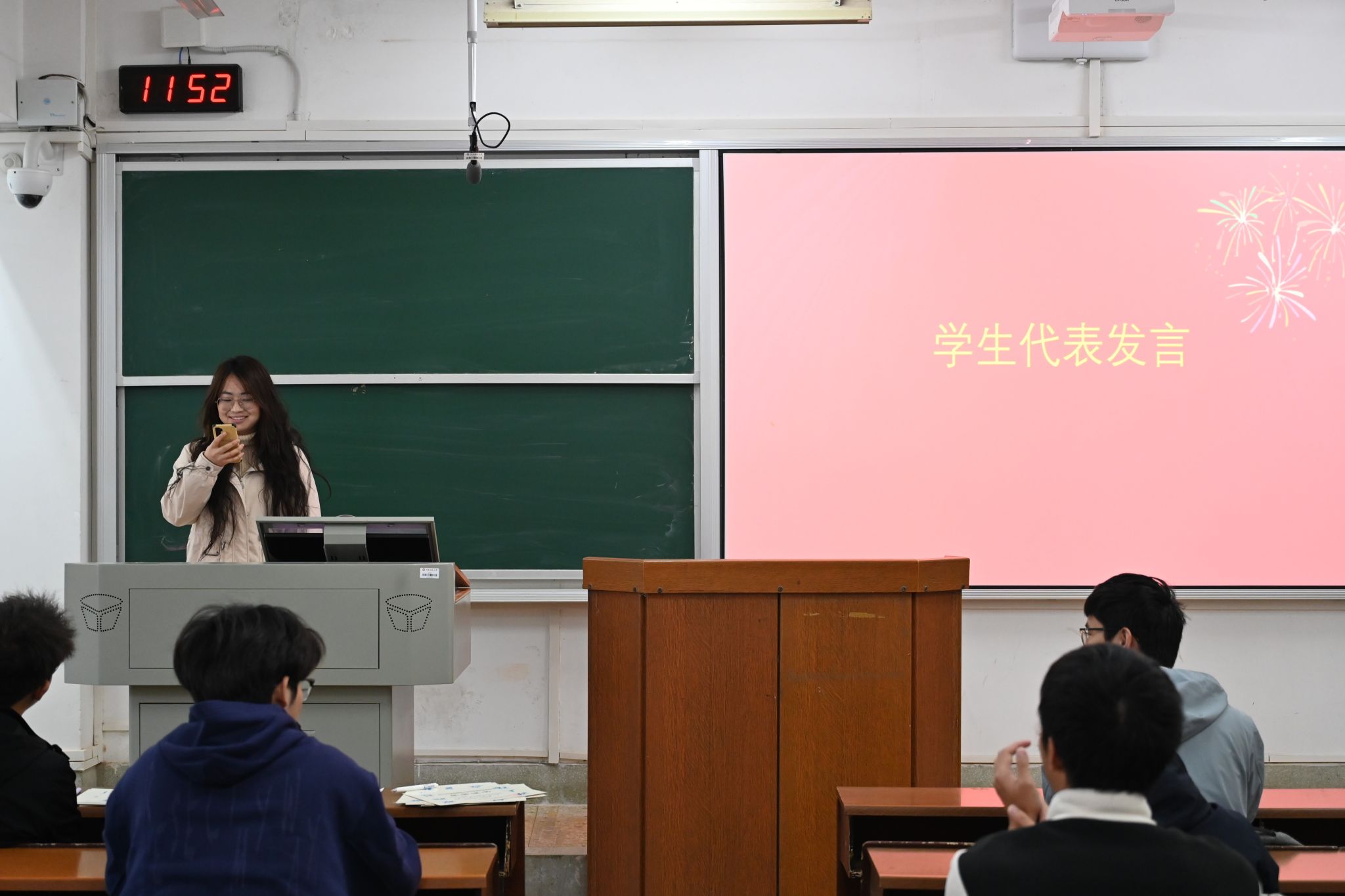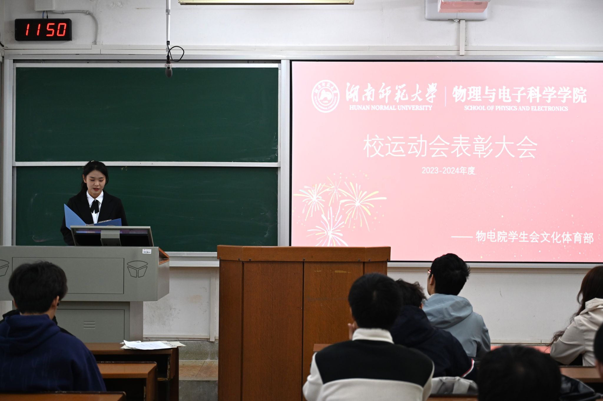 (通讯员 陈泽瑞 段楚楚)11月16日中午,澳门新新浦京708于格物楼220教室举行校运会表彰大会。学生会文体部干事尚千惠主持此次大会,学生会主席团王燕作为学生代表发言。