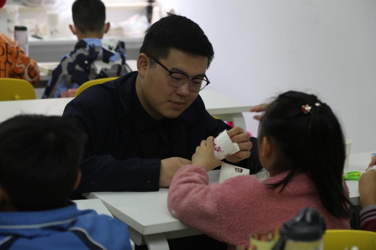 课堂上,梁翔为小朋友们介绍了霉菌的相关知识,推荐了绘本《霉菌姑娘——关于腐烂变质的真相》,激发小朋友们的求知欲。为进一步提高小朋友们的兴趣,他采用视频形式依次展示了纸片托水、非牛顿流体、手工制纸杯花篮实验并使用简洁易懂的语言辅助讲解,便于小朋友们理解原理与流程。志愿者引导小朋友进行淀粉浆制取、修剪纸杯等操作,小朋友们在过程中既提高了参与感,动手能力也得到了充分锻炼。