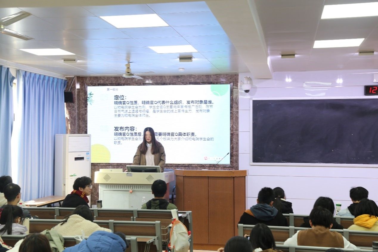 (通讯员 李兵 康胜 段楚楚)12月5日中午,澳门新新浦京708团委青发部于格物楼109教室组织开展第六期知行团校技能班第二次课程。院学生会宣传部部长何亚亚、副部长柏涵担任主讲人,院团委青发部干事李兵担任主持人。