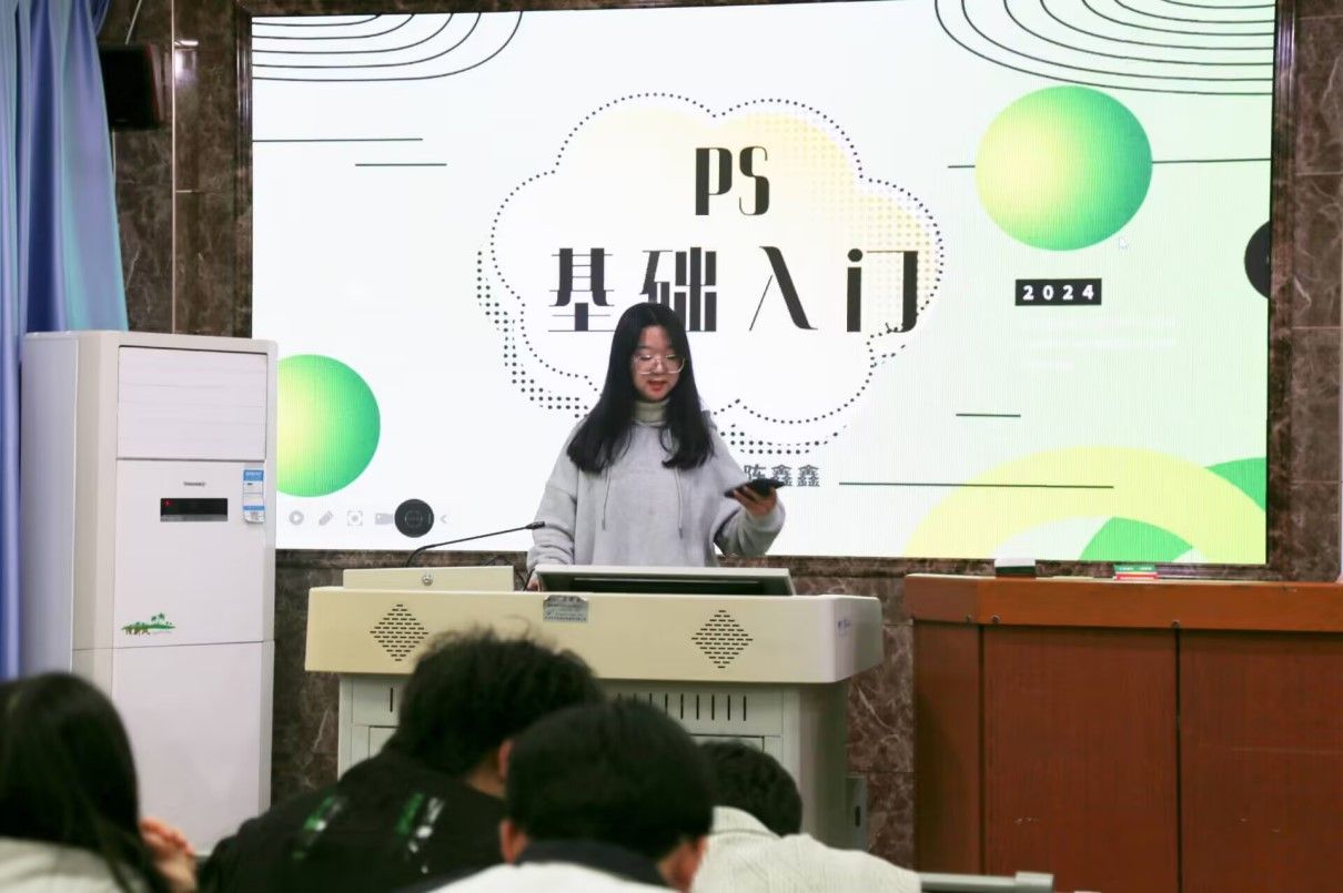 陈鑫鑫介绍了图像处理软件PS的基本用途,其应用场景包括平面设计、数码照片处理、UI设计等。提及PS的基本功能,陈鑫鑫对PS的操作界面进行了细致的展示,让学员们了解了PS工具的分布位置和作用。她结合实践练习为学员们讲解了PS一些常用、实用的功能,例如可以自由调出想要颜色的滤镜,能画出编辑区域的钢笔和完整复制图样的仿制图章等,并通过实操演练向学员们系统地展示了使用PS工具处理图像的完整过程。