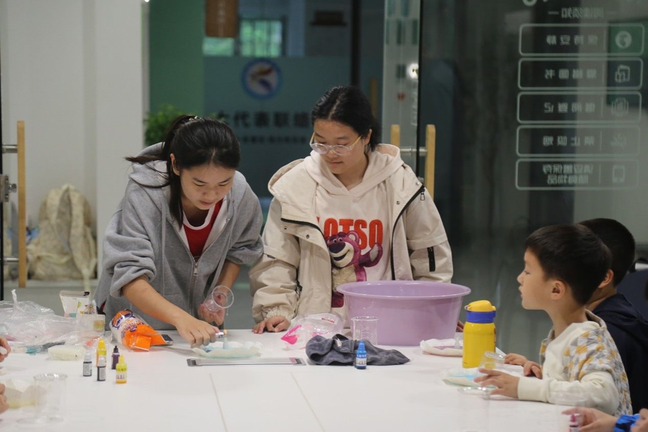 课前,志愿者们与小朋友们进行简单交流,了解了小朋友们对物理知识的掌握情况,并向大家简单的介绍以及学习基础物理知识以及基础物理知识在生活中的实际运用和意义。尚千惠用两个装满水的杯子和一个吸管,向小朋友们演示虹吸现象。即利用水柱的压差,使水上升,然后流向较低的地方。讲解完物理知识后,志愿者带领小朋友一起进行实验并进行讲解。通过实验帮助小朋友对物理、科学有一个基础的认知,并且对科学产生更浓的兴趣,爱上科学。