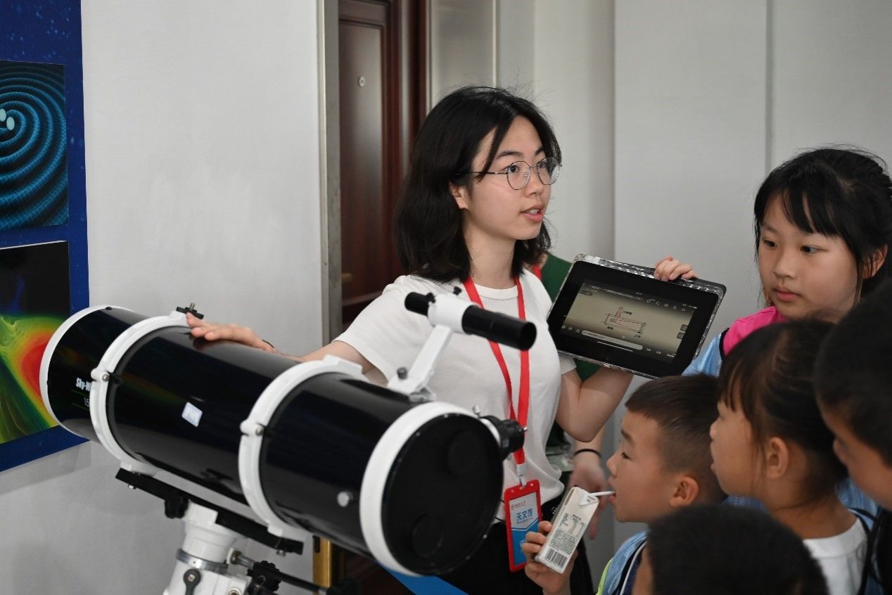 在志愿者们的带领下,参观者们先进入六楼展览厅听讲解员介绍相关板块知识。讲解员从基本的天文知识切入,由浅入深地讲解了恒星演化、黑洞形成、西方八十八星座等天文知识,并详细介绍了中国古代天文学发展史。参观者们进入七楼,讲解员通过讲解傅科摆原理引入地球自转话题,讲解了宇宙大爆炸、弗里德曼三大模型、宇宙物质形成及暗物质暗能量等天文学相关知识。随着参观过程的推进,参观者们跟随讲解员来到天文馆八、九楼学习望远镜的构造以及太阳系的基本结构,并在讲解员及志愿者的指导下于室外用望远镜进行了观测。