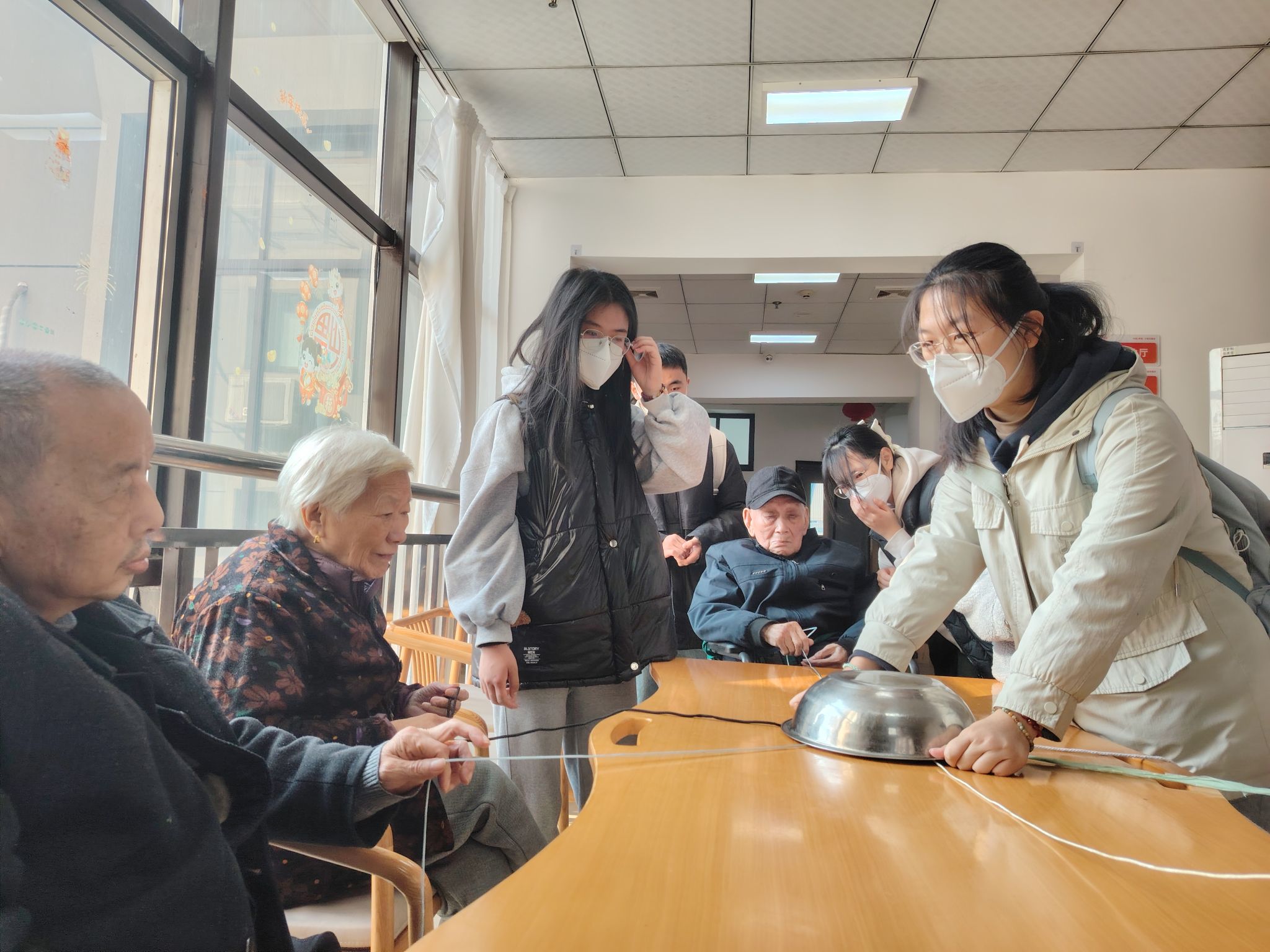 志愿者和老人做游戏
