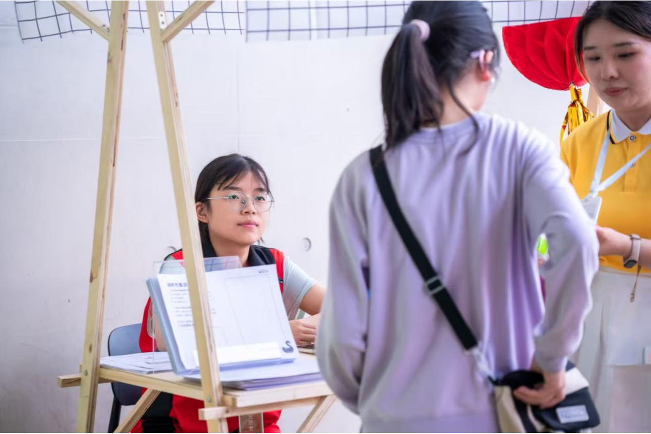 志愿者进行摊位服务
