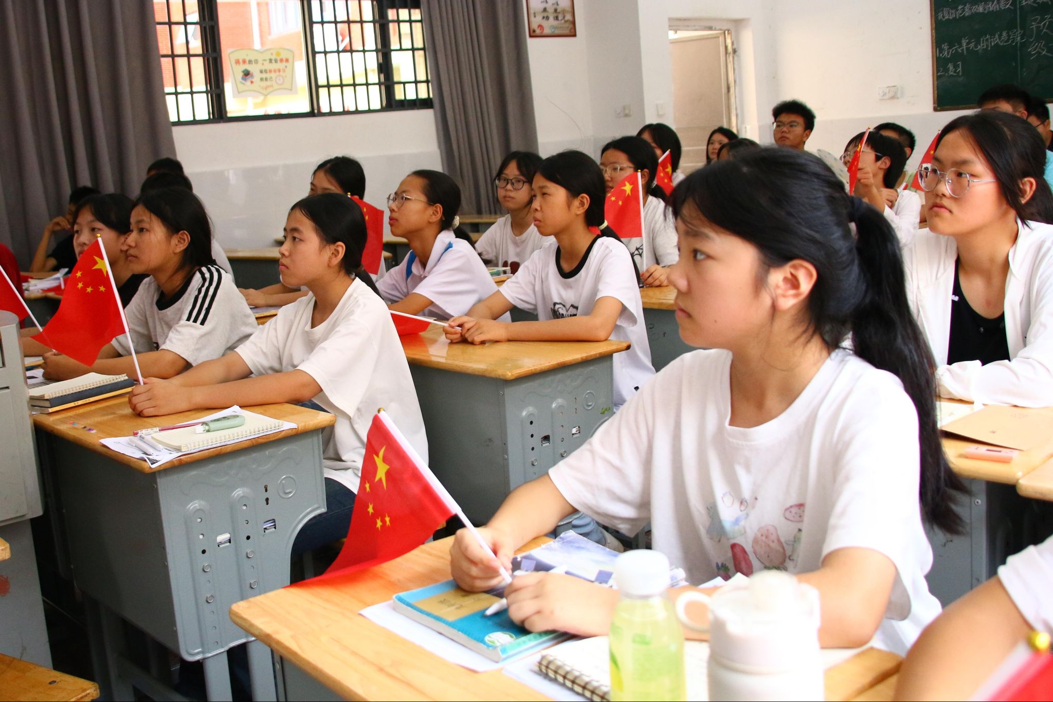 主题班会课上,同学们手握五星红旗,专注地观看叙述卢沟桥事变经过的短片以及各种珍贵史料照片。惨痛的的史实让教室内氛围沉重。观看结束后,同学们纷纷表示对日本侵华活动感到屈辱与愤慨,感慨如今的和平生活来之不易,认识到要做到勿忘国耻,为国争光。最后,主讲人鼓励同学们要努力学习,报效祖国。