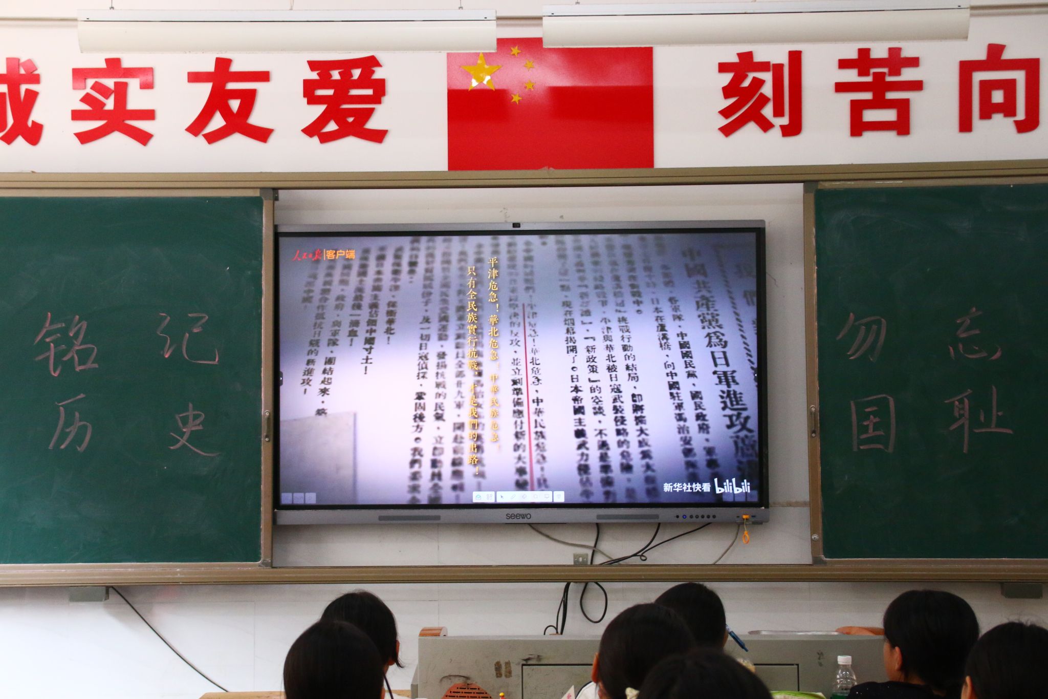 同学们观看历史短片