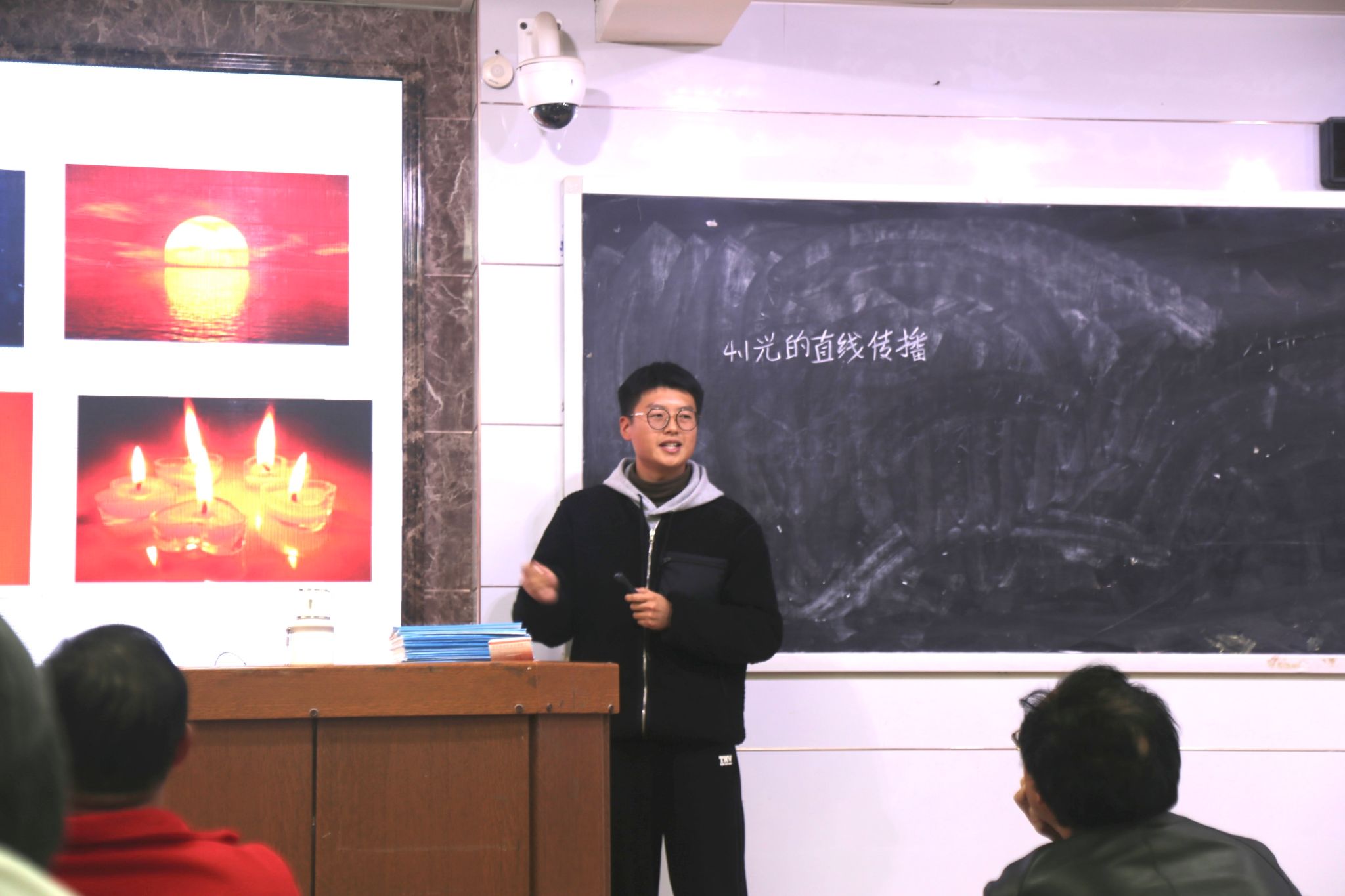 各实习队队长按抽签顺序依次进行实习队工作汇报。实习队队长从队伍概况、实习内容、成果与收获、总结与反思四个方面,就实习期间的工作进展以及任务落实情况进行了总结。在汇报课片段展示环节中,实习生代表按抽签顺序依次进行片段教学展示。实习生代表在有限的时间内,利用板书与PPT结合、理论与实验结合的方式对物理知识进行讲解,展现了澳门新新浦京708学子扎实的学风以及认真的教学风范。各评委对实习生代表的片段教学进行点评与总结,钟显辉鼓励在场同学们不断磨练能力、砥砺品德,时刻牢记教育初心。