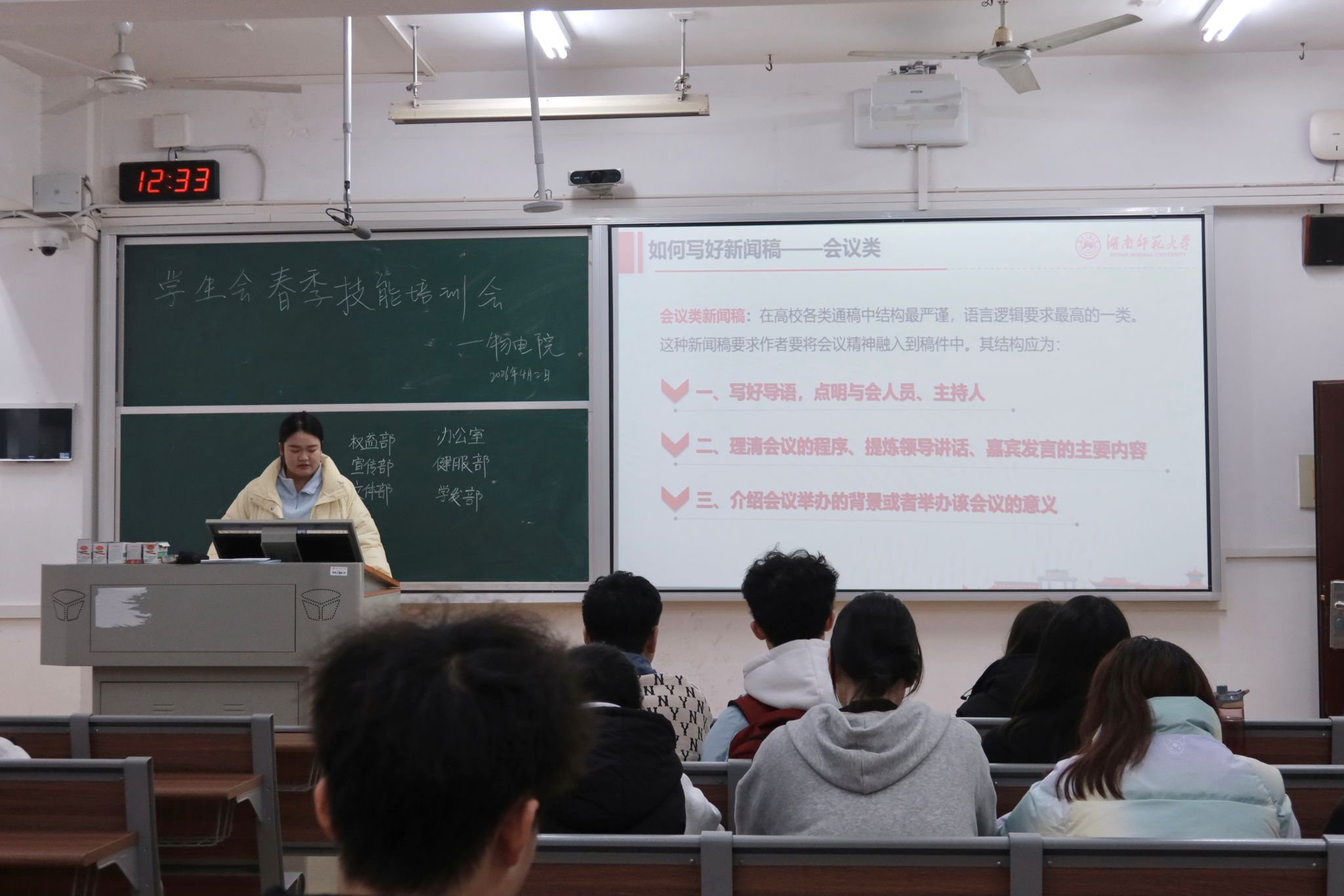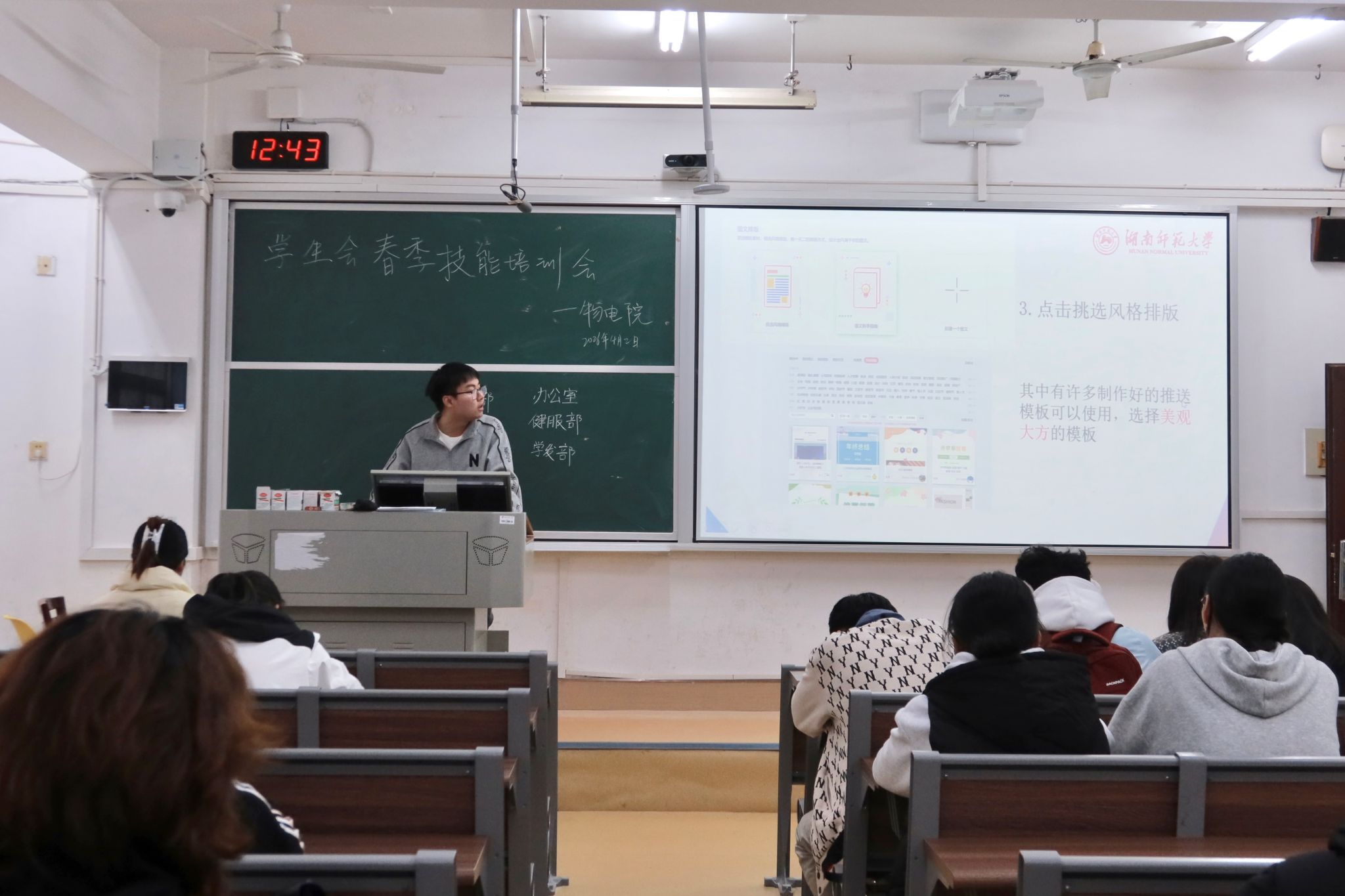 (通讯员 傅年 陈雨婕 陈怡廷)4月2日中午,澳门新新浦京708学生会于220教室开展春季技能培训会,24级黄檬、成勇担任主讲人,澳门新新浦京708学生会全体成员参与本次培训。