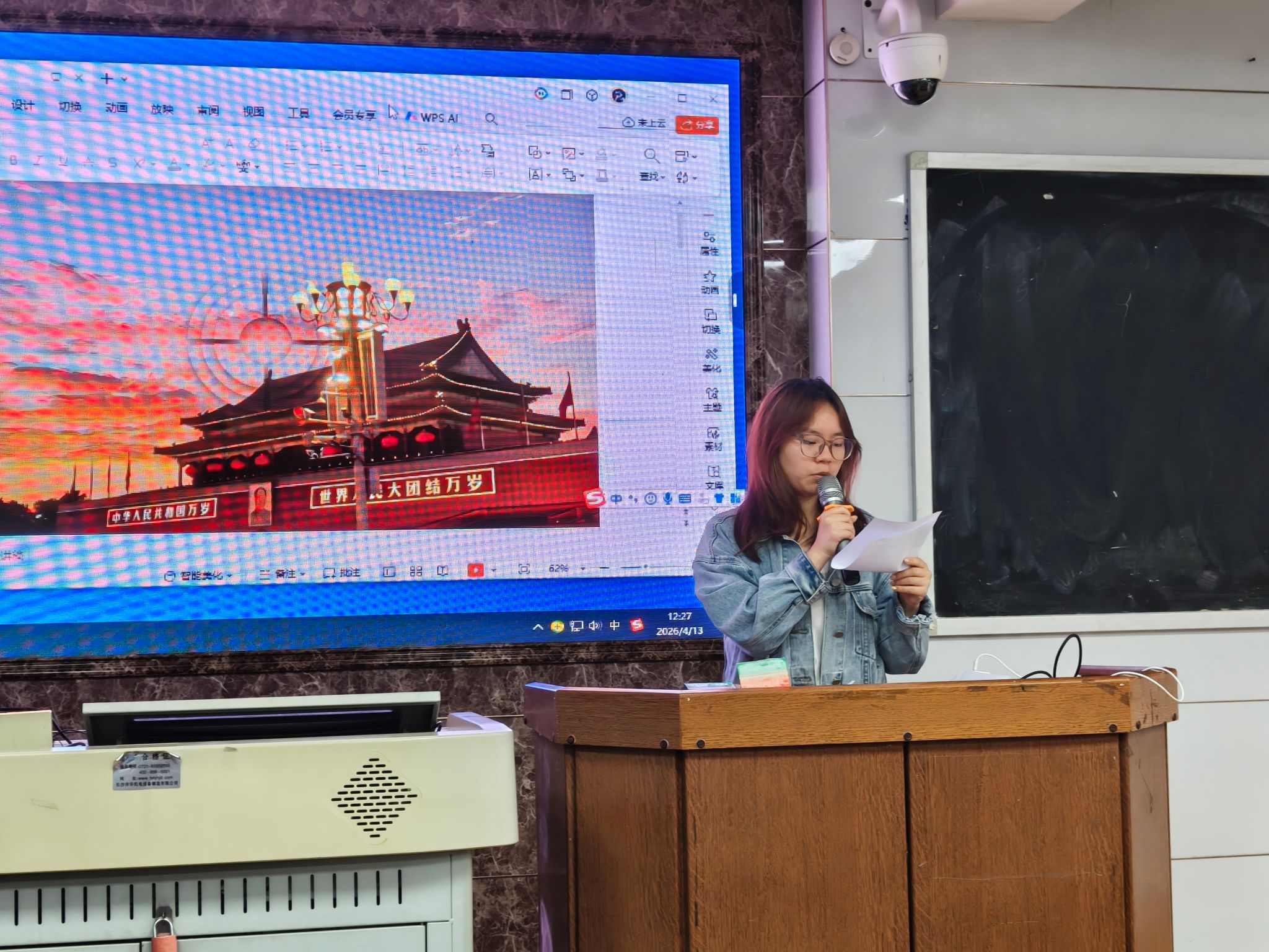 (通讯员熊顺凯 祝莎莎 许玲)4月13日中午,澳门新新浦京708团委青发部于109教室开展第八期知行团校第五次理论班课程。此课程由2024级唐华泓担任主讲人,院团委青发部干事刘洁琼主持。理论班全体学员参与此次课程。