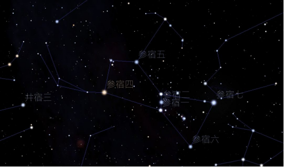 关于猎户座的传说有很多,猎户座在不同的古代文明中都有它的位置,只是形象不同。无论在古代或现代的文学作品中,猎户的腰带与剑经常都有出现。猎户座的腰带处,便有着著名的猎户座三星(参宿一、参宿二、参宿三这三颗星星自东向西连成了一条线),猎户座还有着明亮的参宿七和无数天文爱好者追捧的美丽的星云M42,唐代诗人杜甫在《赠卫八处士》中写下了流传千古的诗句:人生不相见,动如参与商。描述了两颗星中,当一颗星落下,另一颗星升起,两星永不相见的故事,星空似乎总是能寄托深远的思念。其中的参便是属于猎户的腰带处的猎户三星的一颗恒星。