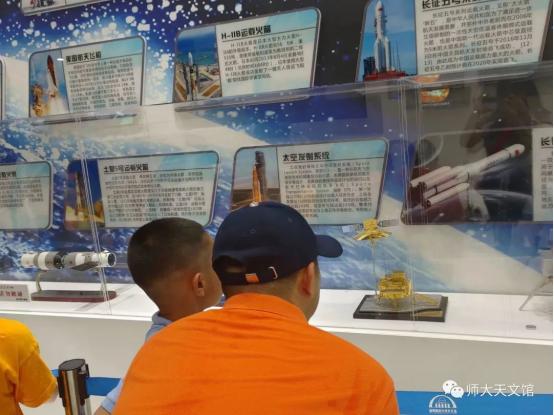 在六楼我们的讲解员由基本的天文知识切入,结合图片与模型,深入浅出地为参观者们讲述了中国古代天文发展史,恒星、黑洞等天体有关内容,和我国的航天发展历程与优秀科研成果。小朋友们听的很认真,一声声的发问“恒星的生命是永恒的吗?”,“那如果宇航员进入黑洞会变成什么呢?”成了天文馆最悦耳的声音。