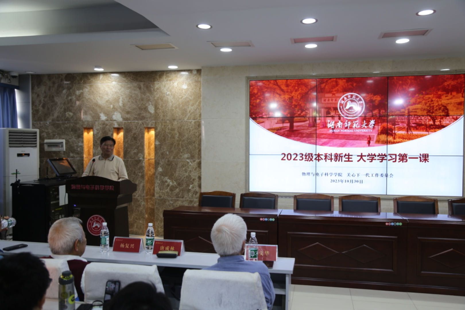 (通讯员 罗荔彤 康胜 王贻菲)10月30日下午,澳门新新浦京708关心下一代工作委员会于格物楼509报告厅开展2023级本科新生大学学习第一课。院关工委常务副主任唐咸林,关工委成员杨复兴、海文华教授出席讲座。院党委副书记郭铭伟主持讲座。