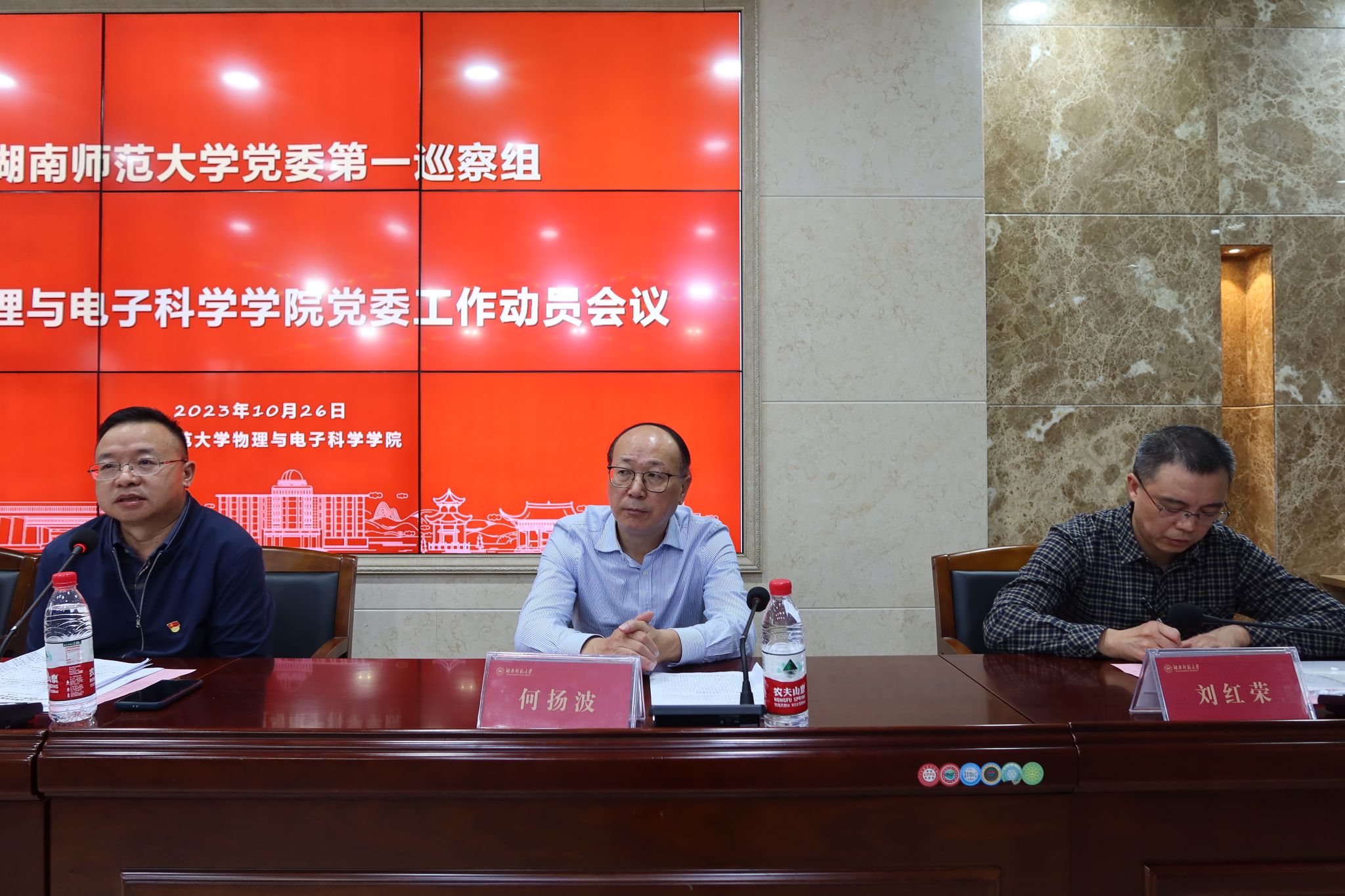 根据学校党委关于巡察工作的统一部署,2023年10月26日下午,党委第一巡察组巡察澳门新新浦京708党委工作动员会召开。会上,党委第一巡察组组长何扬波就即将开展的巡察工作作了讲话,刘怀德副校长就配合做好巡察工作提出要求。澳门新新浦京708党委书记罗嵘主持巡察进驻动员会并作表态讲话。