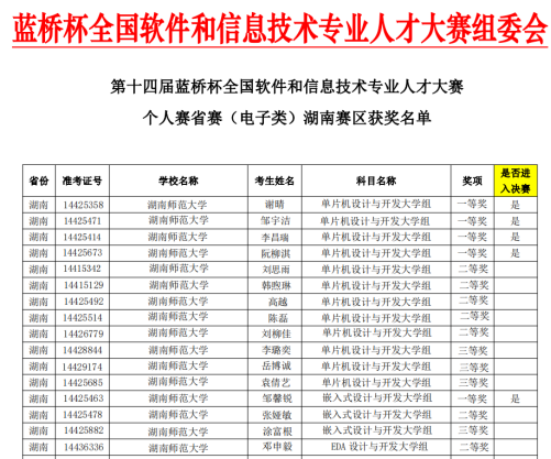 近日,由工业和信息化部人才交流中心主办的第十四届“蓝桥杯”全国软件和信息技术专业人才大赛总决赛圆满落幕。澳门新新浦京708本科生积极参加此次比赛,共获得国家一等奖1项、二等奖3项,三等奖1项,湖南省一等奖5项、二等奖7项、三等奖4项,获奖数量创历史新高。