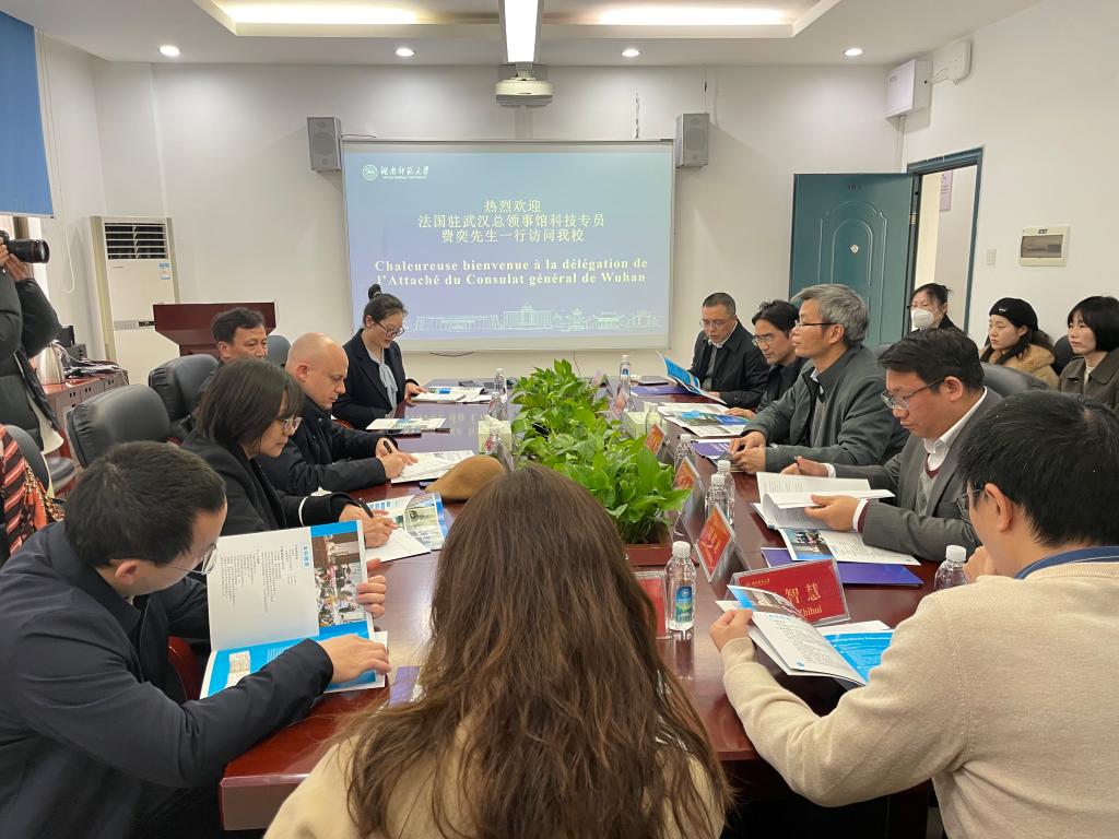 唐东升对法国驻武汉总领事馆代表表示热烈的欢迎,并简要介绍了澳门新新浦京708办学的整体情况。欧阳钢介绍了澳门新新浦京708研究生的培养情况,就合作协同育人等事宜进行了热烈讨论。廖洁桥介绍了澳门新新浦京708学科建设、科学研究情况,表示愿意进一步加强与法国高校和研究机构之间的交流合作。会上教师代表就科研合作事宜进行了深入讨论交流。