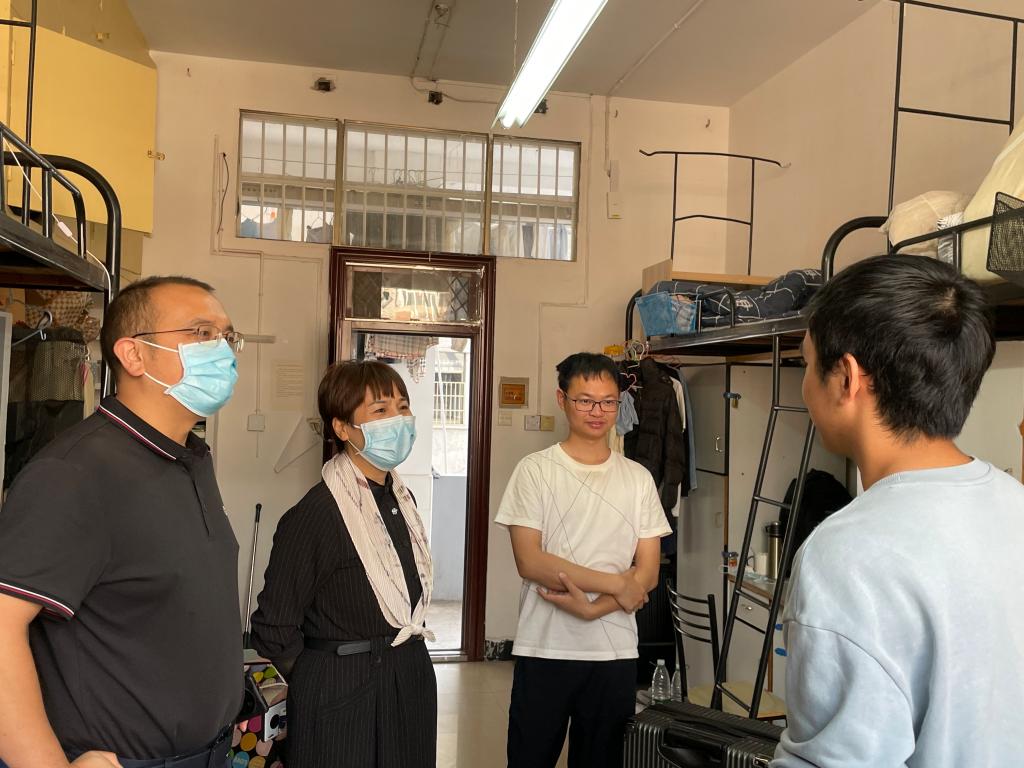 10月21日,澳门新新浦京708党委书记罗嵘、党委副书记郭铭伟与学办老师前往学生寝室看望学生。