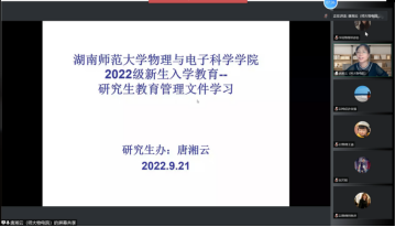 物理学科负责人唐东升教授分别从学科简介、培养目标、研究方向、学制与学习年限、培养方式、课程设置与学分要求、学术论文发表、学位论文、经典文献书目和文献目录等方面对物理类研究生新生进行了详细的介绍。