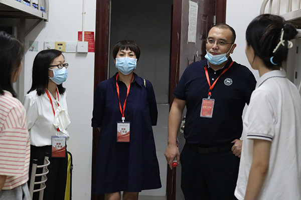 在走访中,院领导与同学们亲切的交谈和问询。“来自哪里呀?饮食是否习惯?宿舍入住后有没有困难?”院领导们和蔼可亲的话语温暖着每一位新生,同学们也热情迎接、积极回应,宿舍里洋溢着师生间轻松愉快的交谈氛围。