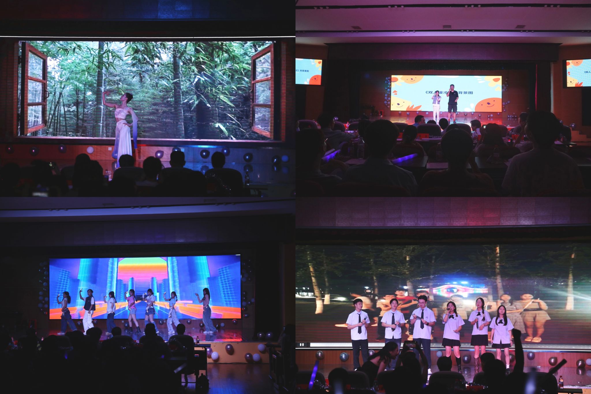 晚会节目类型丰富,老师与同学们同台表演,以舞蹈、歌唱、魔术、情景剧等形式演绎精彩。动感十足的《shooting star》和《日不落》将现场气氛点燃,轻快的舞姿和激情的演唱展示了当代青年积极向上的精神风貌。歌曲《明天你好》《骄傲的少年》和《想把我唱给你听》用优美的旋律、娴熟的演绎唱出校园生活的美好和对未来的向往,大学四年的点点滴滴化作音符再现。独舞《灵》以柔美动人的舞姿呈现出中华优秀传统文化的独特魅力。别开生面的《双人漫才》为晚会增添了欢声笑语,情景剧《找自己》和光影剧《光照光召》讲述了大学生在迷茫中寻找自我、找回自我的故事。神奇的魔术表演和热火朝天的趣味问答环节将晚会推向高潮。辅导员罗瑞霞、韩翔宇用《这世界那么多人》暖心表达着对学生的不舍,罗嵘用歌曲《二十年后再相会》为毕业生们送上了最真挚的祝福。
