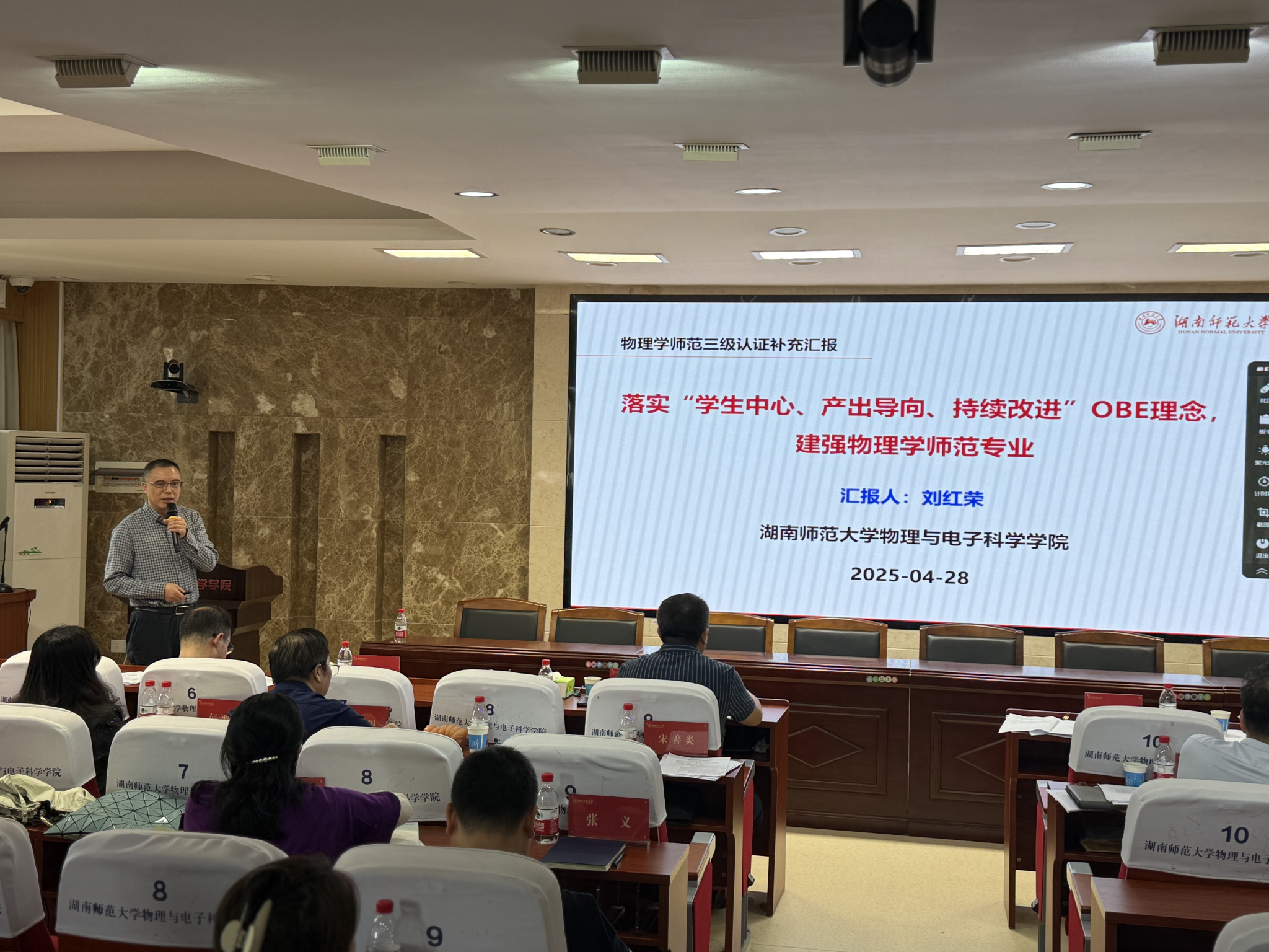 15时40分开始,刘红荣院长在509报告厅作专题汇报,系统介绍了物理学师范专业在学科特色、师资队伍、科教融合等方面的建设成果,重点呈现“卓越教师”培养路径的创新实践。汇报结束后,专家组针对课程目标设计、质量保障闭环等关键环节进行询证,刘红荣结合专业实际逐一回应。