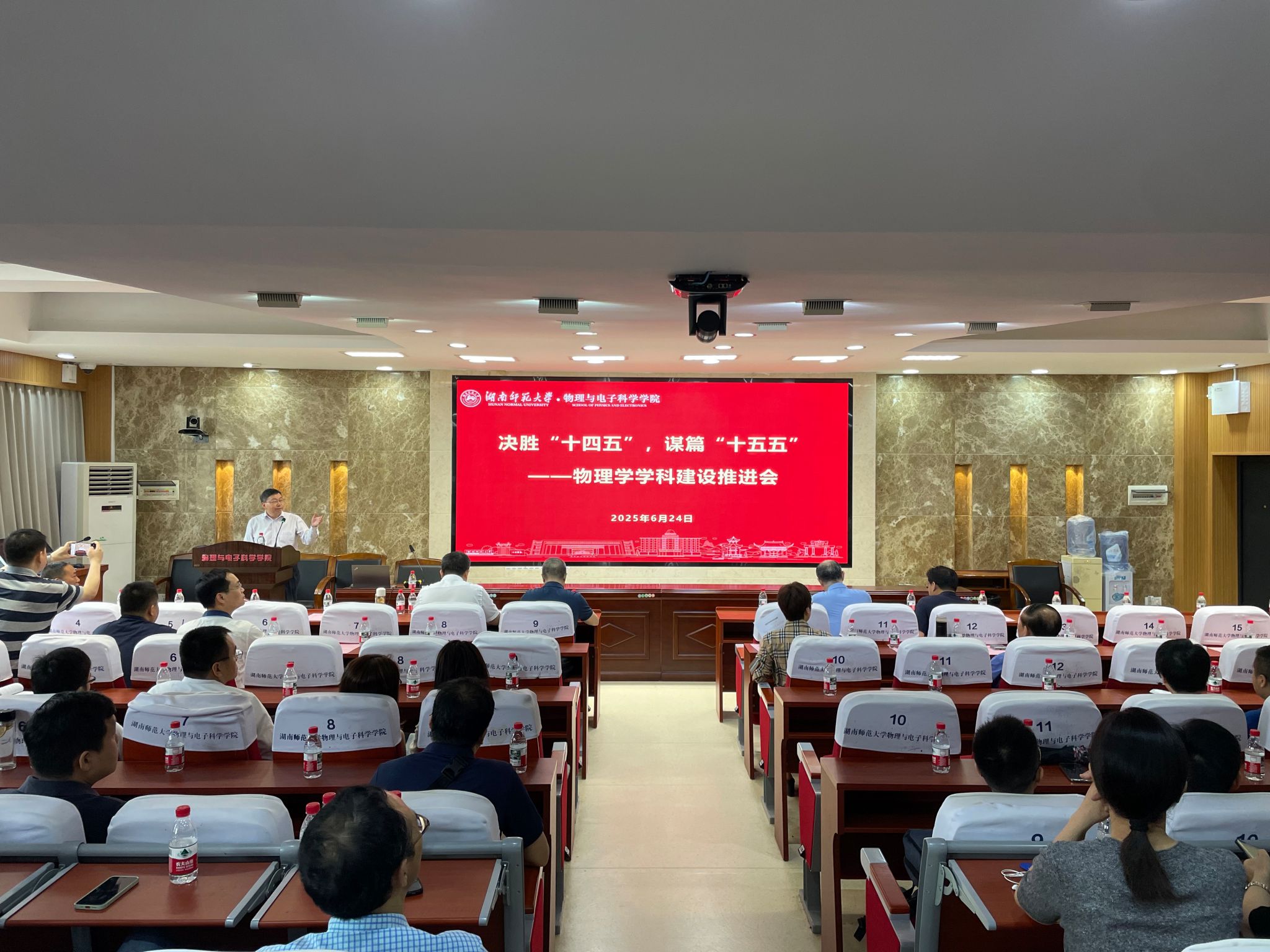 为深入推进学科建设,全面提升学院学科水平,6月24日上午,澳门新新浦京708在格物楼509报告厅召开了主题为"决胜‘十四五’,谋篇‘十五五’"的学科建设推进会。会议由物理学学科带头人匡乐满教授主持。学校副校长杨震,发展规划与学科建设处、教务处、研究生院、科学技术处、财务处、资产与实验室管理处等职能部门领导,以及全院教师共同出席会议。
