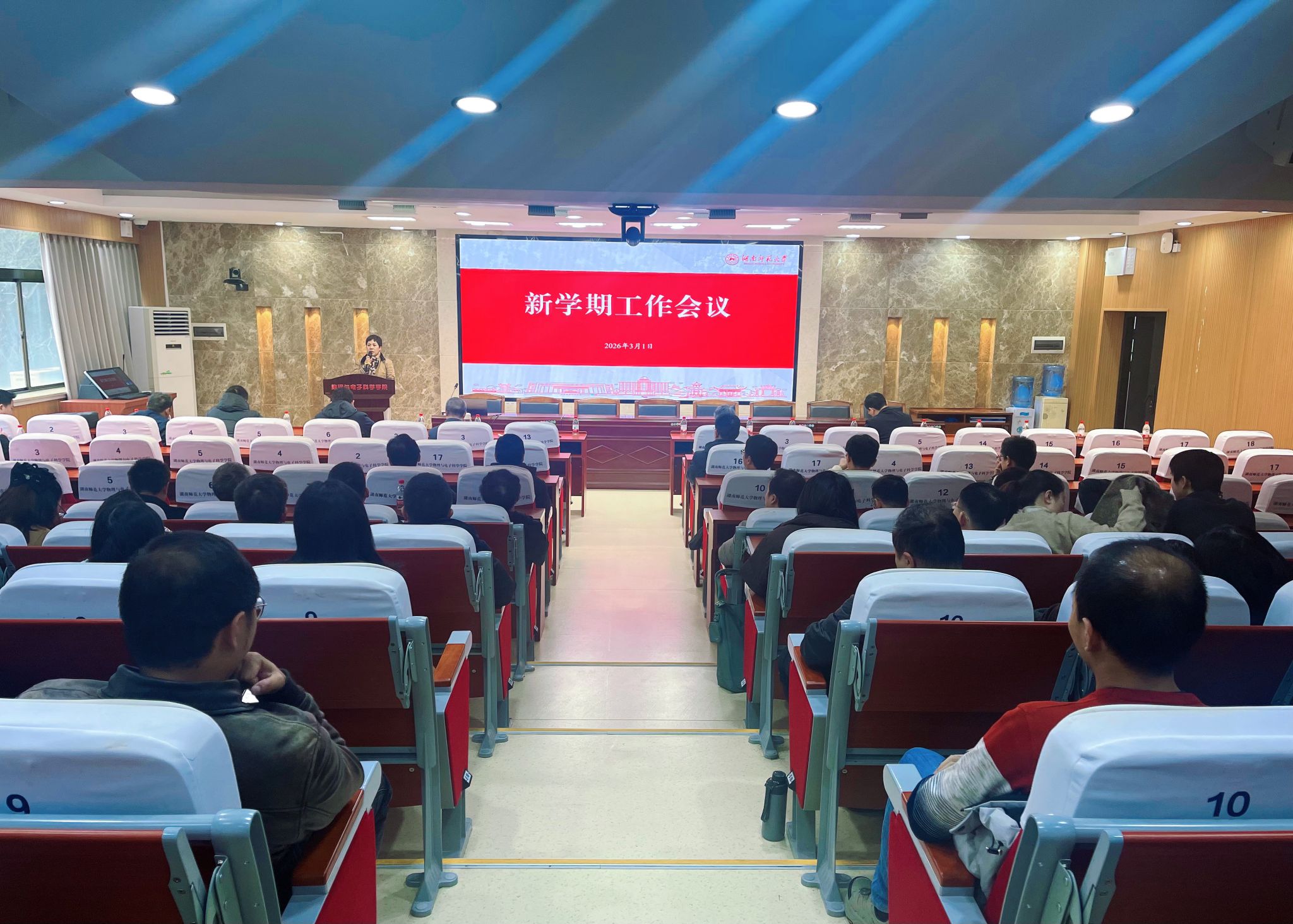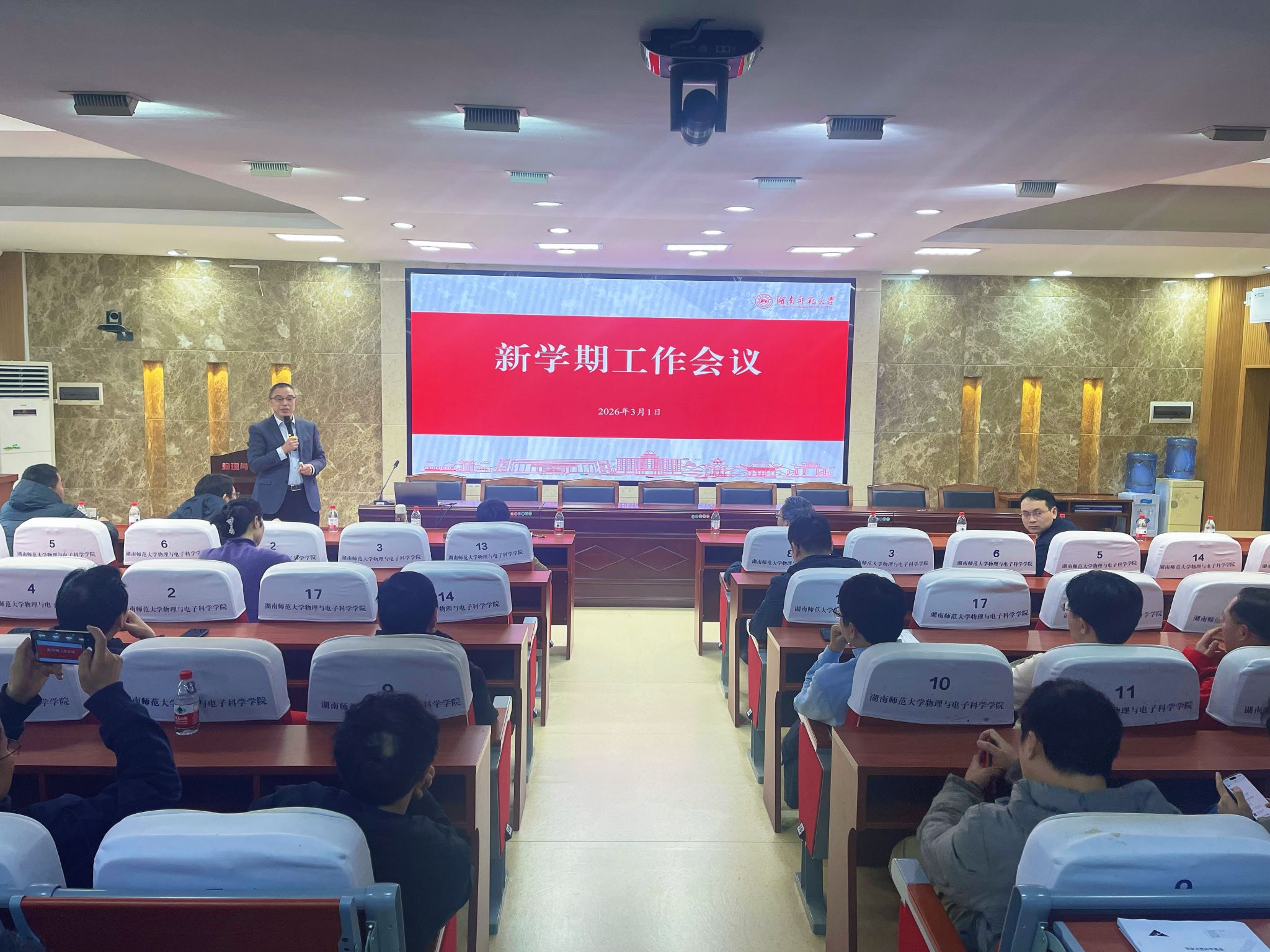 3月1日下午,澳门新新浦京708在格物楼509报告厅召开2025年秋季学期教职工大会,全面部署新学期重点工作。副校长刘红荣出席,院党委书记罗嵘主持会议,全院教职工齐聚一堂,以饱满的精神状态迎接新学期到来。