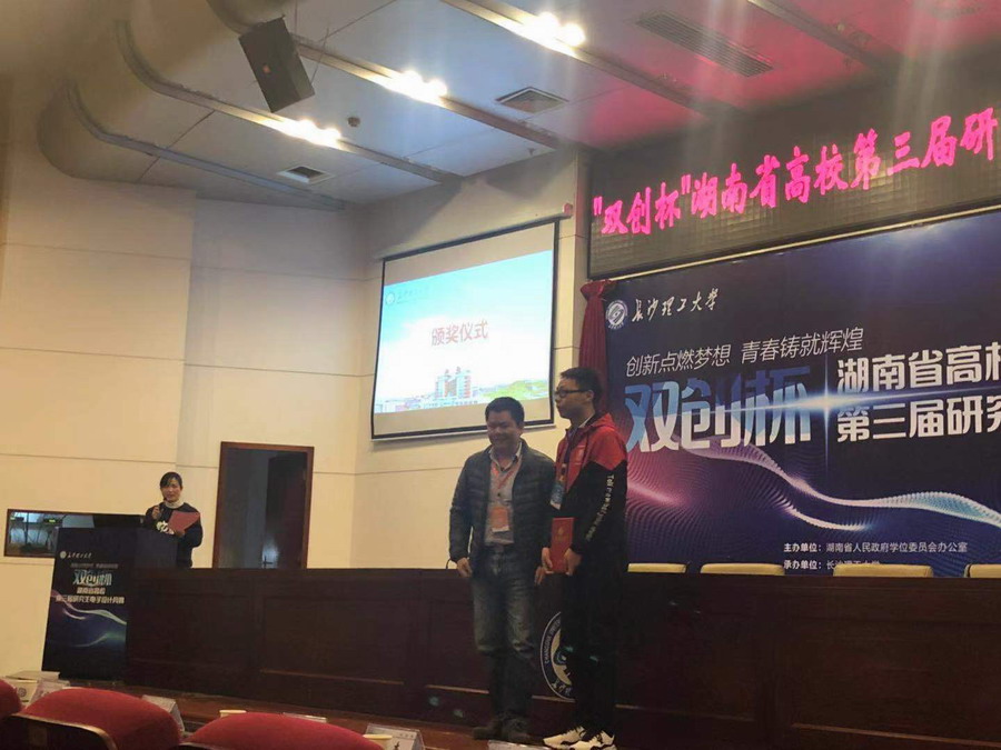 2019年11月30日在长沙理工大学举办了湖南省高校第三届研究生电子设计竞赛。来自国防科技大学、中南大学、湖南大学、澳门新新浦京708、湘潭大学、长沙理工大学等16所高校的103支队伍参赛。大赛经过作品初评、现场展示和答辩环节,综合评选出团队特等奖2项、一等奖8项、二等奖14项,三等奖24项;优秀个人奖10名、优秀指导教师奖9名和优秀组织奖3个、企业奖1项。澳门新新浦京708金湘亮教授指导的由四名研究生和两名本科生组成的“芯工匠ESD队”和“芯工匠Sensor队”获得一等奖,并且“芯工匠Sensor队”同时获得企业奖。本次竞赛是由省政府学位委员会办公室主办,面向全省高等院校在读研究生的团体性电子设计创意实践活动,旨在推动研究生培养模式改革和创新。