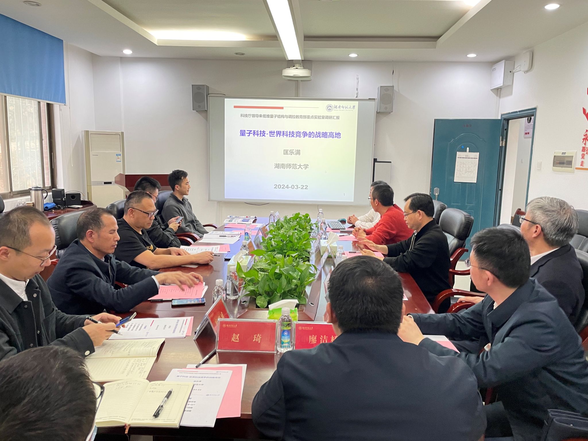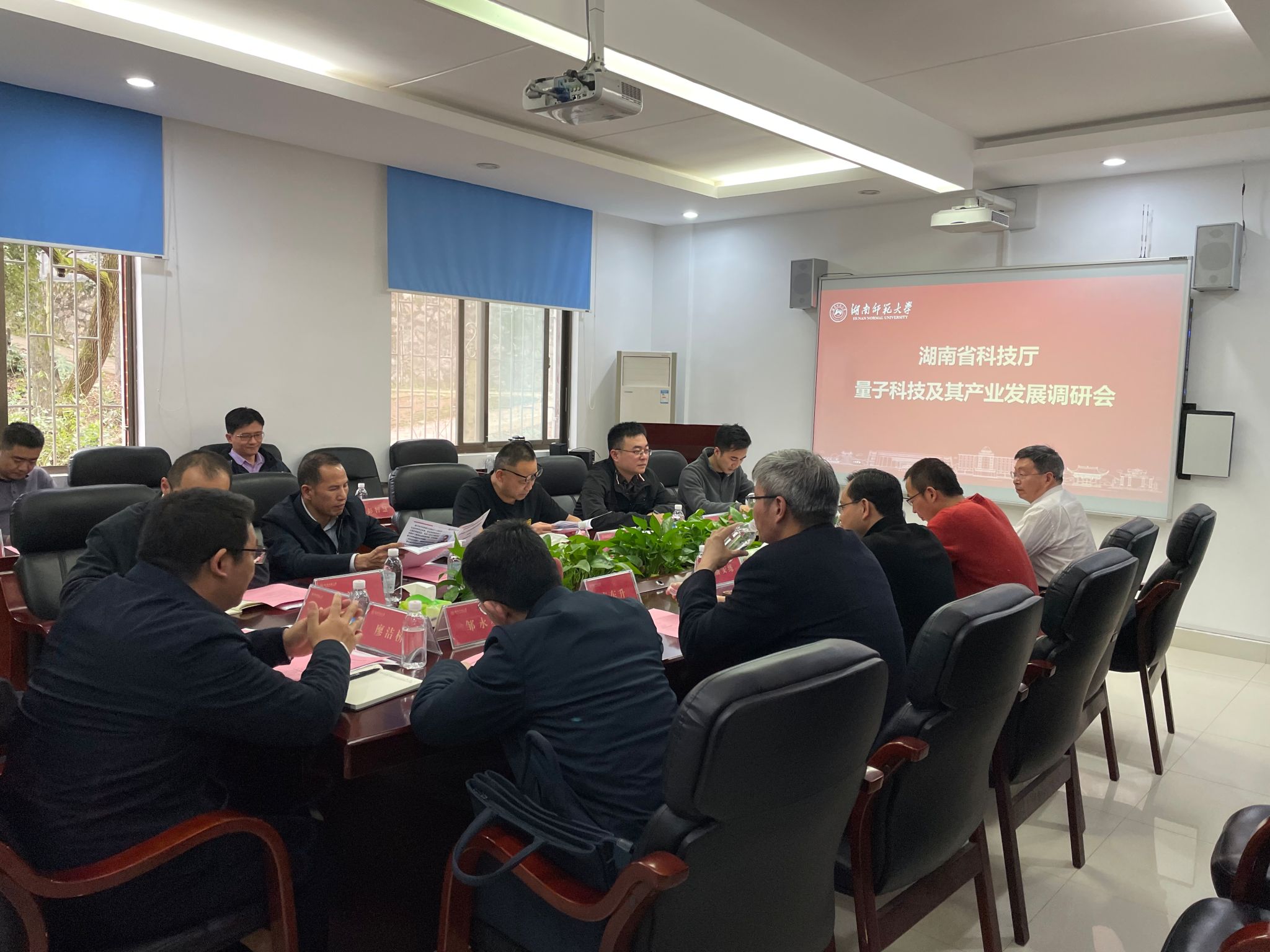 3月22日下午,湖南省科技厅前沿技术处处长王先民一行莅临澳门新新浦京708开展量子科技及其产业发展调研。我校副校长潘安练、科技处处长唐东升、副处长邹永星等出席会议,会议由学院副院长廖洁桥主持。