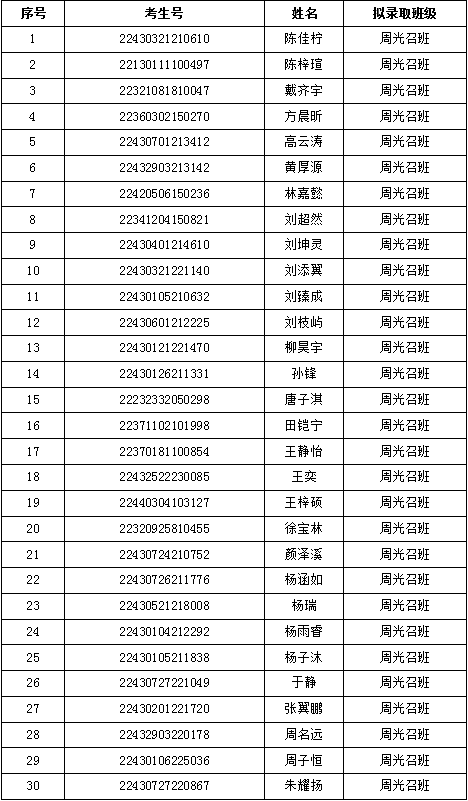 世承书院-澳门新新浦京7082022级周光召班拟录取学生名单(按姓名音序排序)